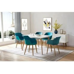 Chaise Et Fauteuil De Table BOBOCHIC – Lot De 4 Chaises De Table PRINS Bleu Canard – Bleu Canard