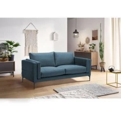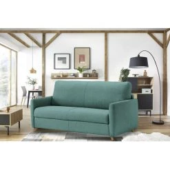 Canapé Droit Convertible BOBOCHIC – Canape Droit Convertible Coffre RIMINI Bleu Canard – Bleu Canard