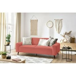 Canapé Droit Fixe BOBOCHIC – Canapé Droit Fixe 2 Places BASTILLE Tissu Bouclette Doux Rose – Rose