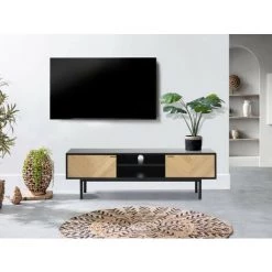 Meubles TV BOBOCHIC – Meuble TV 161 Cm ARDENSIA Chêne Vieilli Et Graphite – Chêne Et Noir