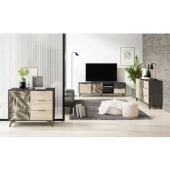 Meubles TV BOBOCHIC – Meuble TV 190 Cm DIDEROT Gris & Bois Naturel – Gris & Bois Naturel