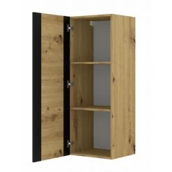 Rangement Vitrine BOBOCHIC – Rangement 1 Porte 48 Cm MONDI Chêne Et Noir – Chêne Et Noir