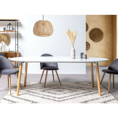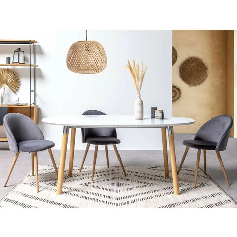 Belinda table à manger plateau de table en bois – laqué blanc, pieds Pincon, aspect bois massif / chêne chromé