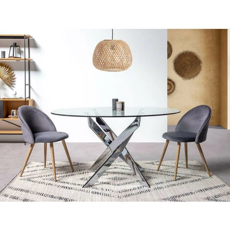 La table ronde ASTOR en verre et métal chromé argent saura vous séduire grâce à son design simple et épuré. Equipée d’un grand plateau rond en verre trempé et de pieds en métal couleur argent, elle vous apporte de la qualité en plus d’une simple élégance. Laissez-vous séduire par ses belles finitions.