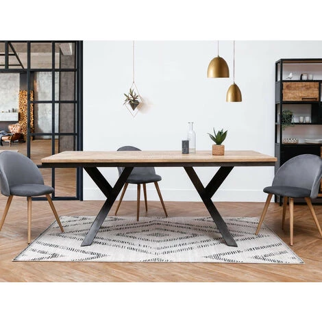 Table à Manger BOBOCHIC – Table à Manger STEEL Bois De Manguier Massif Et Pieds En Métal Noir 200×100 – Bois