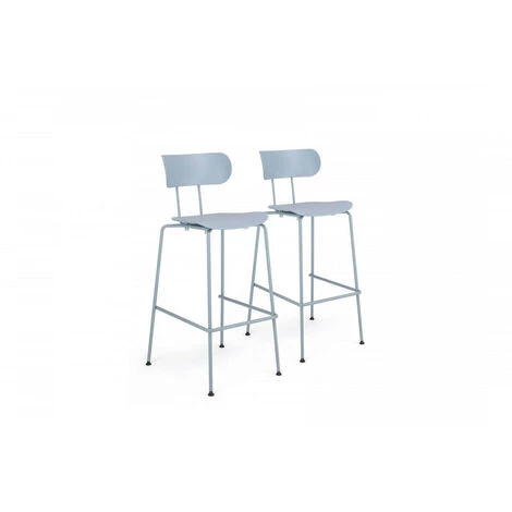 Ensemble de 2 tabourets FONTI bleu de style industriel assise ergonomique en polypropylène, pieds en métal.