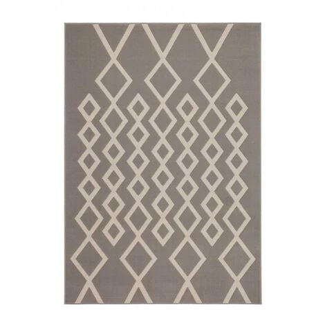 Tapis design motif géométrique, couleurs contrastées IGLI Taupe / Ivoire 80cm x 150cm 100% polypropylène BCF . Tissé à la machine. Jute. existe en plusieurs tailles. Epaisseur : 10 mm. Pays d’origine : Belgique