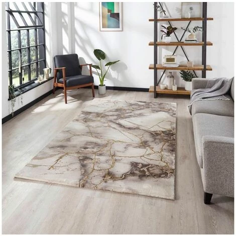 Conçu en polypropylène et en polyester, ce tapis à poil court et aux couleurs sobres est inspiré du style moderne.
