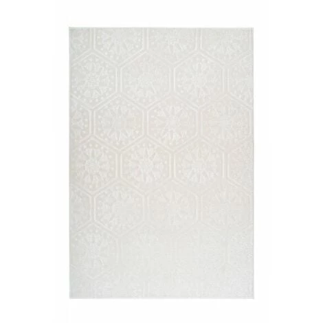 Tapis BOBOCHIC – Tapis Poils Courts FLORETTA Motif Graphique – Blanc