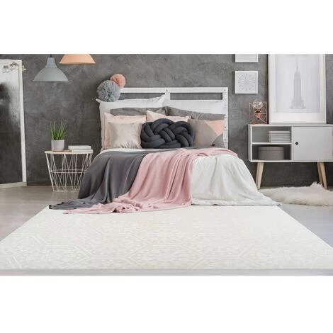 Tapis BOBOCHIC – Tapis Poils Courts FLORETTA Motif Graphique – Blanc