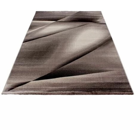 Tapis à poil court de qualité supérieure, tissé avec un fil laineux de haute densité pour donner une sensation de douceur, motif à formes décolorées, couleurs tendances.