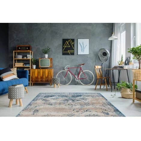 Tapis à poils court à l’aspect vintage, motif abstrait, facile d’entretien