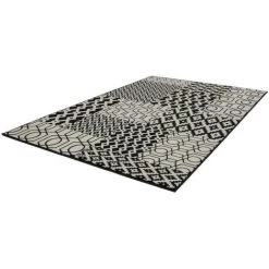 Tapis design motif géométrique, couleurs contrastées IRMA Multicolor / Noir 160cm x 230cm 100% polypropylène BCF . Tissé à la machine. Jute. existe en plusieurs tailles. Epaisseur : 10 mm. Pays d’origine : Belgique