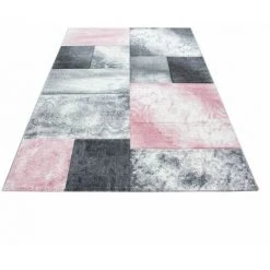 Tapis à poil mi-long de qualité supérieure, tissé avec un fil laineux de haute densité pour donner une sensation de douceur, motif avec des rectangles intercalés, couleurs tendances.