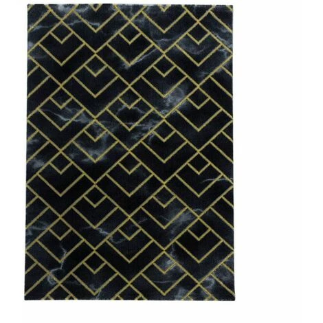 Tapis BOBOCHIC – Tapis Poils Courts MARTIE Motif Graphique 80×150 Jaune – Jaune