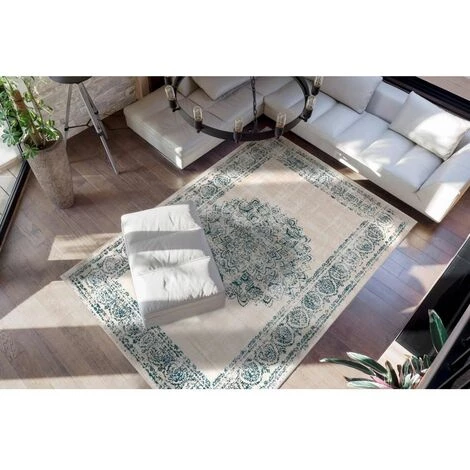 Tapis à poils court à l’aspect vintage, motif oriental, facile d’entretien