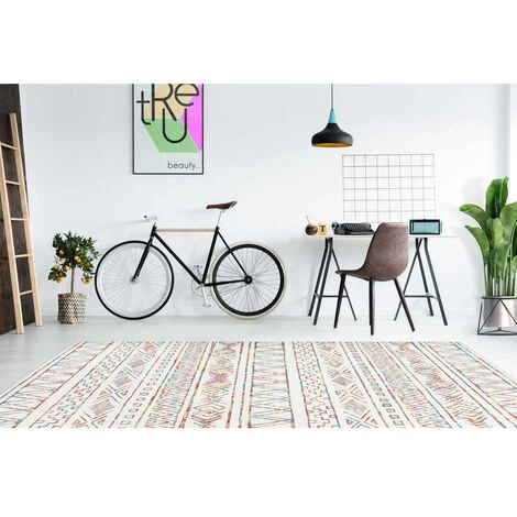 Tapis design ethnique aspect délavé, poil court, entretien facile NADOR Beige 120cm x 180cm 100% Polyester. Tissé à la machine. dos en feutre. peut être utilisé dans des pièces avec chauffage par le sol. Epaisseur : 6 mm. Pays d’origine : Chine