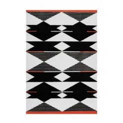Tapis à poil court au design ethnique doté d’un motif symétrique effet 3D, couleurs intemporelles, facile d’entretien