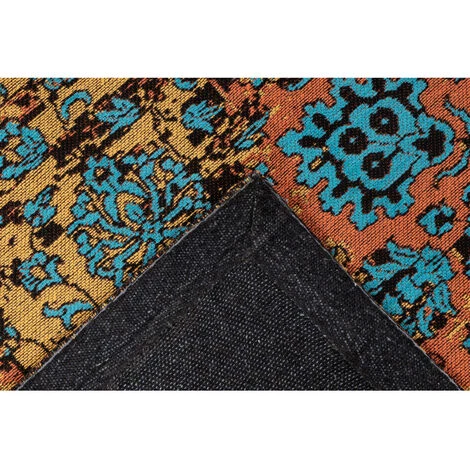 Tapis à franges, couleurs sobres, motif vintage. Couleur : Gris / Bleu. Dimensions : 120cm x 180cm. Matière : 100% Polyester. Méthode de fabrication : Tissé à la machine. Finition en dessous : 100% coton. Informations complémentaires : Peut être utilisé dans des pièces avec chauffage par le sol. Epaisseur 10 mm