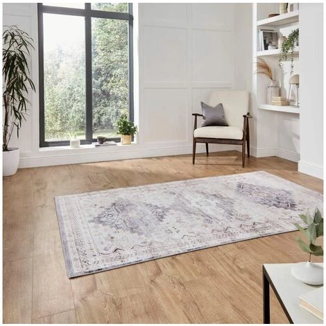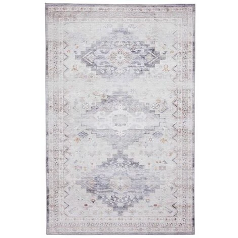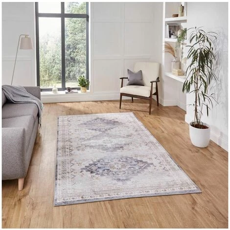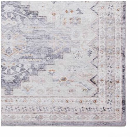 Dessiné dans un style oriental, ce tapis aux poils courts est fabriqué à 100% de chenille. Couleurs sobres.