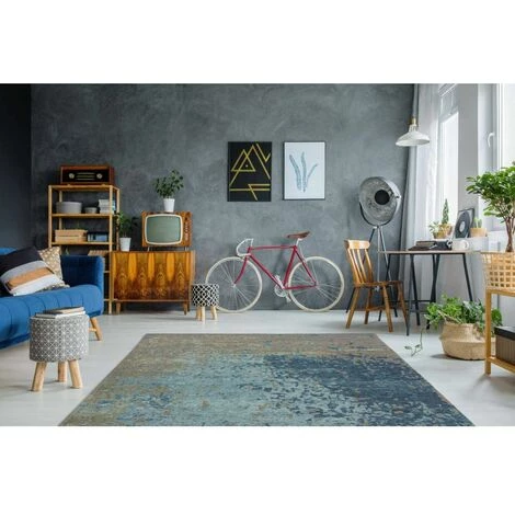 Tapis à poils courts au design vintage délavé. Facile à entretenir et résistant, renforcé par un support en coton tissé serré