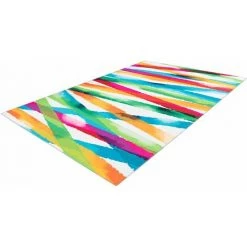 Tapis au design rétro délavé, poil court, entretien facile STRAPY Multicolor 200cm x 290cm 100% Polyester. Tissé à la machine. dos en feutre. peut être utilisé dans des pièces avec chauffage par le sol. Epaisseur : 6 mm. Pays d’origine : Chine