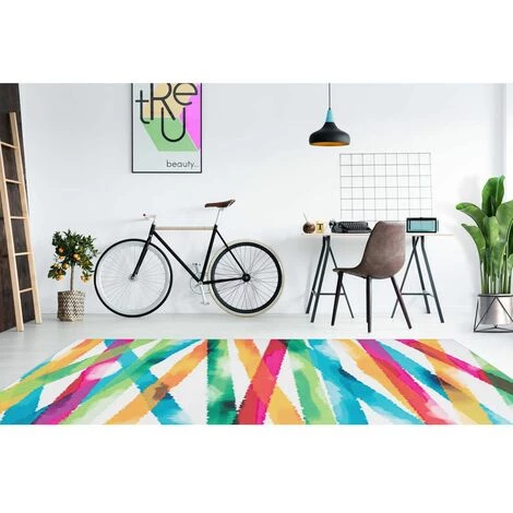 Tapis au design rétro délavé, poil court, entretien facile STRAPY Multicolor 80cm x 150cm 100% Polyester. Tissé à la machine. dos en feutre. peut être utilisé dans des pièces avec chauffage par le sol. Epaisseur : 6 mm. Pays d’origine : Chine
