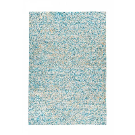 Tapis en cuir, effet métallisé, travail manuel soigné. TORI Turquoise / Doré 160cm x 230cm 100% Cuir, cuir à poil. Fabriqué à la main. 100% laine feutrée. facile à nettoyer. Epaisseur : 5 mm. Pays d’origine : Inde