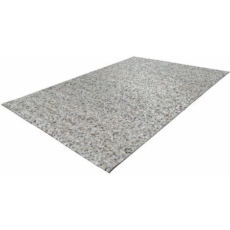 Tapis en cuir, effet métallisé, travail manuel soigné. TORI Gris / Argenté 200cm x 290cm 100% Cuir, cuir à poil. Fabriqué à la main. 100% laine feutrée. facile à nettoyer. Epaisseur : 5 mm. Pays d’origine : Inde