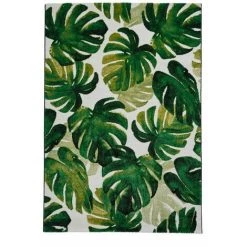 Tapis à poil court au design tropical trÚs tendance. Conçu en matiÚre de haute qualité il est durable et trÚs doux au toucher. Dimensions : 120 x 170