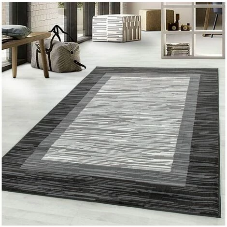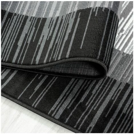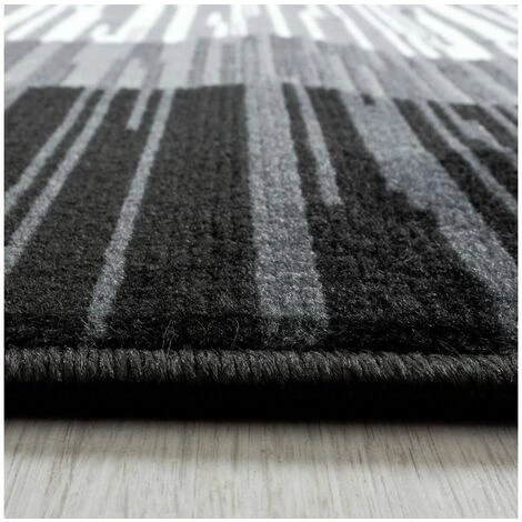 Tapis à poil court de qualité supérieure, tissé avec un fil laineux de haute densité pour donner une sensation de douceur, motif enchainement de frises pointues, couleurs tendances. Nombre nœuds: 147.200 Points, Epaisseur: 1 cm, densité: 1300 gr/m². Produit certifié Oeko-Tex (le label Oeko-Tex garanti l’absence de substance chimiques nocives pour la santé). Produit conforme à la démarche BSCI (Business Social Compliance Initiative est une démarche qui tend à améliorer les conditions sociales des travailleurs chez les fabricants basés dans les pays émergents).