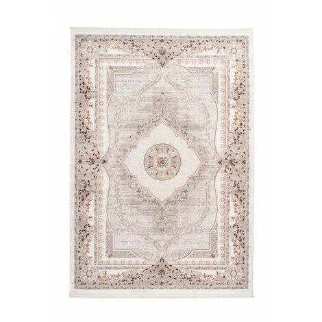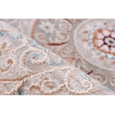 Tapis à franges, couleurs sobres, motif vintage ZAIR Gris / Rose saumon 80cm x 150cm 100% Polyester. Tissé à la machine. 100% coton. Peut être utilisé dans des pièces avec chauffage par le sol. Epaisseur : 12 mm. Pays d’origine : Turquie