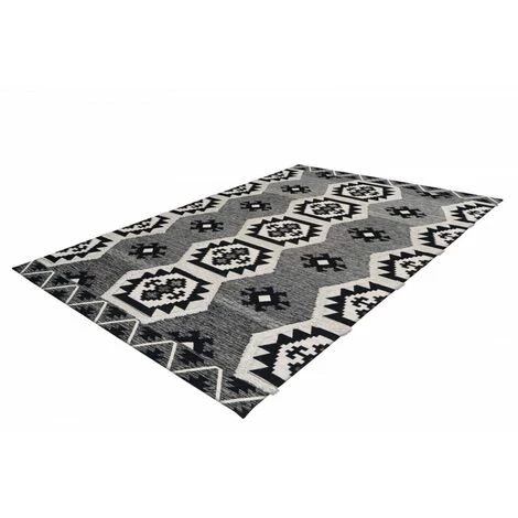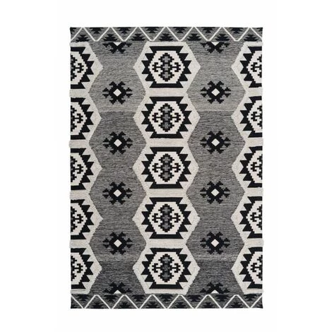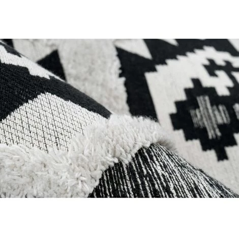 Tapis Ă poil court au design ethnique tissĂ© Ă la main, dotĂ© d’un motif symĂ©trique effet 3D, couleurs intemporelles, trĂšs doux au toucher, facile d’entretien