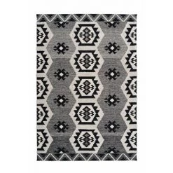 Tapis à poil court au design ethnique tissé à la main, doté d’un motif symétrique effet 3D, couleurs intemporelles, très doux au toucher, facile d’entretien