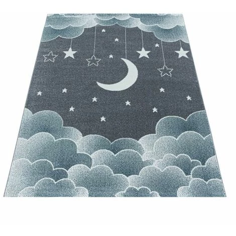 Tapis Enfant BOBOCHIC – Tapis Enfant Shaggy CUTY Imprimé 80×150 Bleu – Bleu